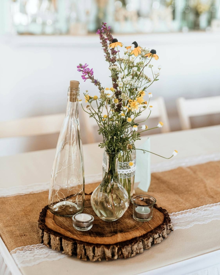 Incorpora materiales como madera reciclada, piedras o plantas suculentas. Un tronco de madera con huecos para colocar velas o macetas pequeñas puede ser un punto focal perfecto para cualquier ocasión. Este tipo de centro es ideal para quienes buscan un estilo rústico y moderno al mismo tiempo, y es completamente personalizable con elementos adicionales como musgo o flores secas.